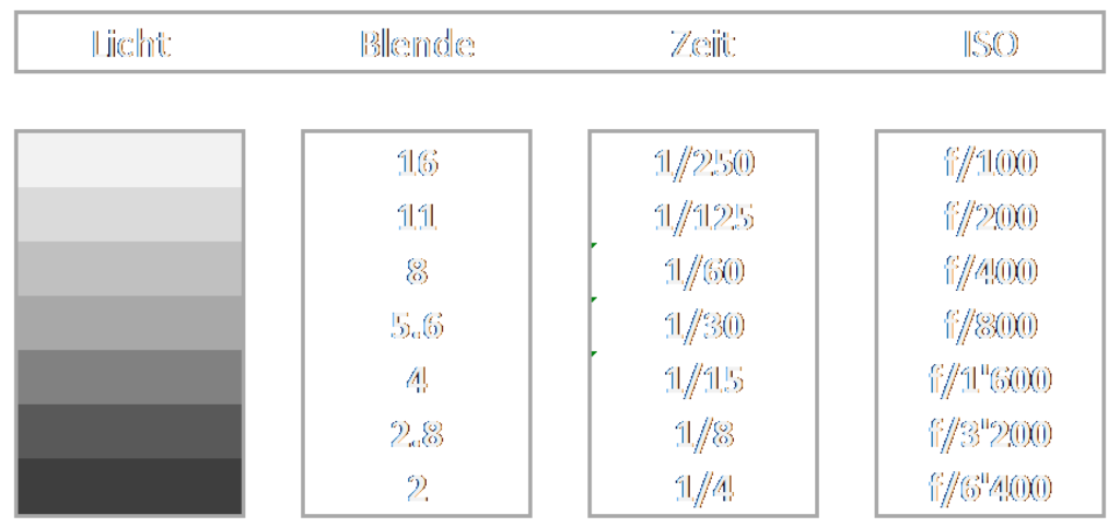 Dazwischen gibt es natürlich zwischenwerte (halbe Blenden…).