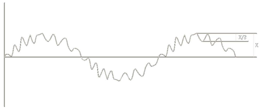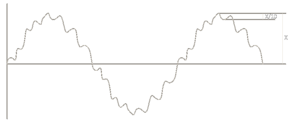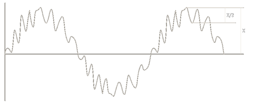 Mit dem ISO Wert kann die Lichtempfindlichkeit des Sensors gesteuert werden. Je höher der ISO-Wert ist, umso Lichtempfindlicher wird der Sensor. Das hört sich sehr interessant an, hat jedoch einen gravierenden Nachteil. Je empfindlicher der Sensor eingestellt wird, umso mehr Bildrauschen ist auf dem Bild zu sehen. Bildrauschen ist hauptsächlich ein Thermisches Problem. Je länger der Sensor belichtet wird, umso mehr Rauschen entsteht. Dies weil die Fotoelemente auf dem Sensor nicht nur bei Lichteinfall Elektronen freisetzen, sondern auch bei Wärmeeinwirkung. Je länger der Sensor belichtet wird, umso mehr Wärme entsteht. Das Rauschen des Sensors ist eigentlich konstant. Wenn jedoch genügend Licht auf den Sensor fällt, ist das SNR (Signal to Noise Ratio = Verhältnis von der Signalgrösse zum Rauschen) so gut, dass das Rauschen vernachlässigt werden kann. Folgendes Bild zeigt dass das Signal viel grösser ist als die kleinen Wellen (Rauschen):