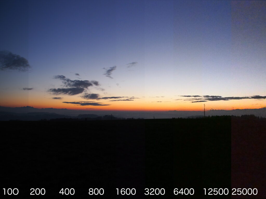 Wie im obigen Bild ersichtlich ist, sollte standardmässig nicht höher als mit ISO 800 fotografiert werden. Eine Ausnahme wäre die Nacht- und Sternenfotografie.